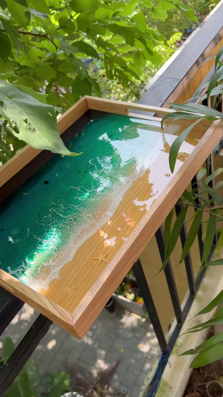 Our Acacia Wood Tea Tray with a Resin Beach Ocean Design is a great addition to any home, mixing functionality with style.